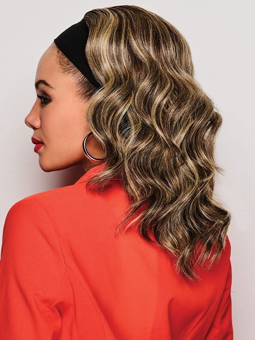 18″ Wavy Waves Headband Wig by Kim Kimble gives you the perfect slip-on-and-go style! This gorgeous headband wig features long, layered hair and romantic loose waves. The synthetic hair is made with Tru2Life heat friendly fiber for versatile styling.