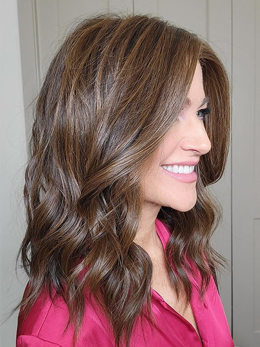 Corey by Envy is from the prestigious EnvyHair Collection. Showcasing a stunning long length, the face-framing layers and loose waves create a voluminous appearance. The silky soft hair is crafted with human hair and heat friendly synthetic fiber, so you can enjoy a natural-looking hairstyle that stays fresh all-day long! Learn more about the benefits of EnvyHair below.Â