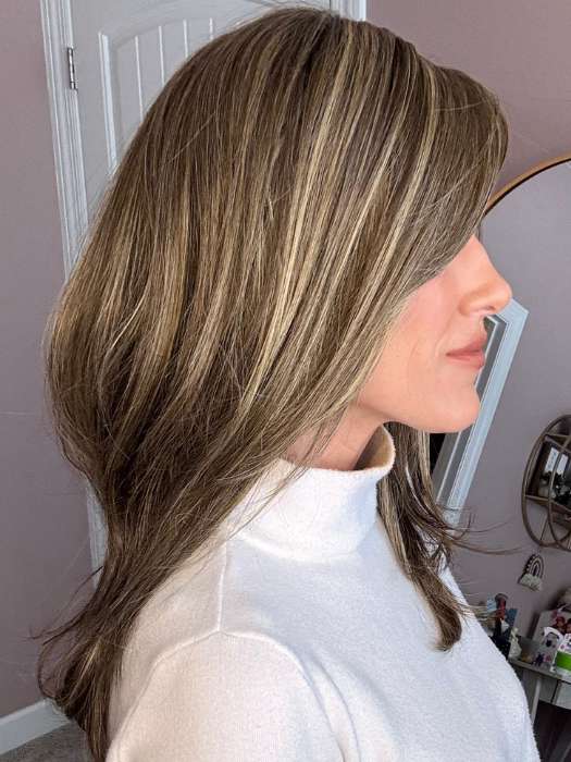 Dress Rehearsal by Raquel Welch is a heat friendly synthetic wig from the Sheer Luxury Collection. The mid-length hair has long, feather-cut layers to create natural volume. The soft bangs frame the face and can either be worn on the face or swept off the face. The hand tied monofilament part and temple to temple lace front give this elegant wig its natural look.