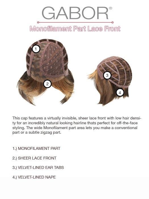The ready-to-wear lace front is 1 ½” deep and creates a natural-looking hairline that allows you to style the hair off of the face. The monofilament part is located on the left and can be adjusted in the pre-selected hand tied area. It is sheer to blend in with all skin tones making it a must have feature. With lots of texture and layers, this unique cut is flattering and on trend.