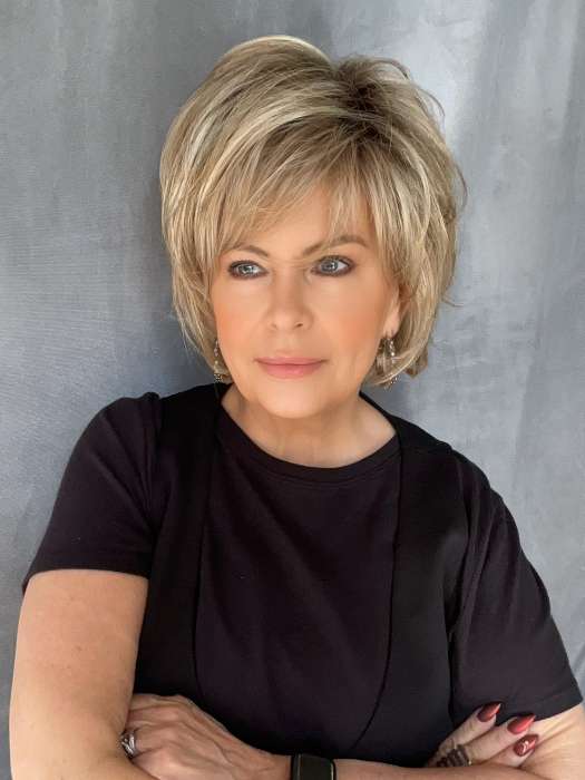 Glenn by Amore is a synthetic wig that shows off a sweet bob haircut with tapered fringe. This short wig has monofilament cap construction that is covered with a softnet material for improved air flow and comfort. The wider lace front frames the face for a seamless, discreet hairline.