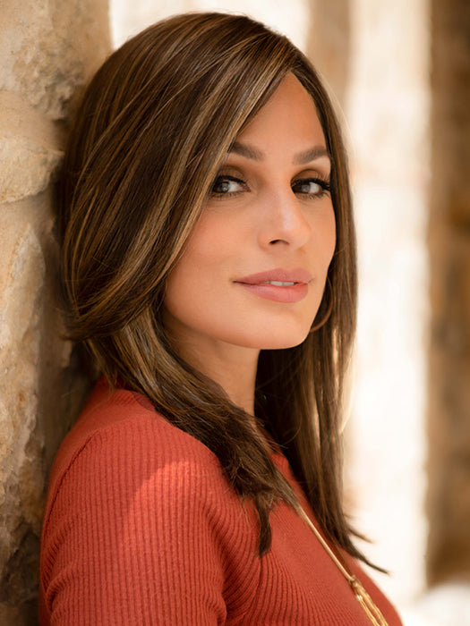 Hudson by Estetica is a mid-length style with soft, subtle layers. This straight, synthetic style has a lace front and monofilament top, so you can feel confident and look natural!