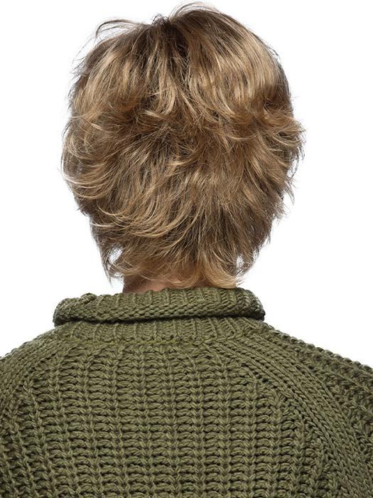 Mandy wig by Estetica Designs Wigs is a short layered cut wig with a flip back design combined with an open-stretch cap construction.
