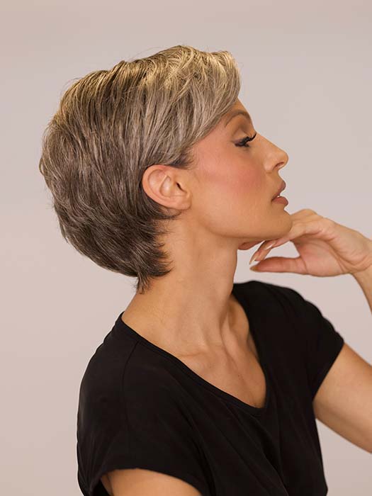 Modena by Ellen Wille is from their Modixx Collection. This short wig features an edgy pixie cut with stylish long layers in the crown area and gently tapered back. The longer nape area lends a graceful, blended look. This synthetic hair wig has a full monofilament top and lace front to provide a natural look. The back of the cap is wefted for breathability and lasting comfort.