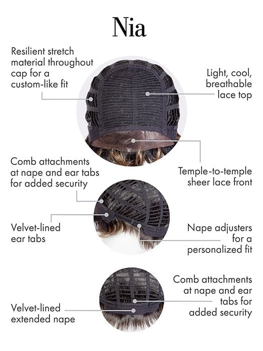 Nia by Kim Kimble is a bold short wig that is made with Tru2Life heat friendly synthetic fiber for infinite styling potential. The boycut crop haircut has a slight wavy texture and is longer in the front. The temple to temple lace front creates an authentic-looking hairline, and lightweight lace top allows your scalp to “breathe.”