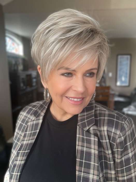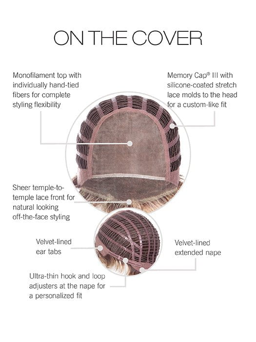 On the Cover by Raquel Welch showcases an eye-catching pixie cut with soft waves and contoured back. The synthetic hair is made with Tru2Life® fiber that can be styled with heat tools and looks and feels like human hair. The Memory Cap III contours to the shape of your head for a more comfortable fit. This short wig has ultra thin hook-and-loop adjusters at the back nape area for a custom fit. The full monofilament top creates the illusion of hair growth.