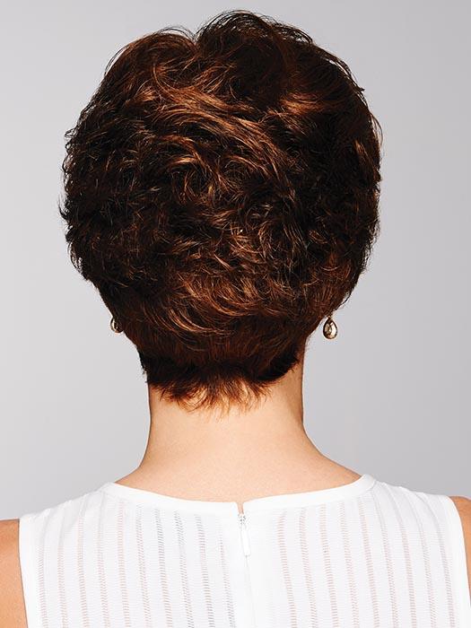 A short, full style, PIXIE THIS by Gabor features softly waved layers throughout. A longer, tapered fringe along both sides allows the wearer to tuck the hair behind the ear or wear it in front of the ear for a softer, face-framing effect. The fullness in the back blends into a short, nape-hugging textured finish.Â