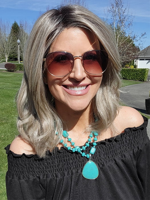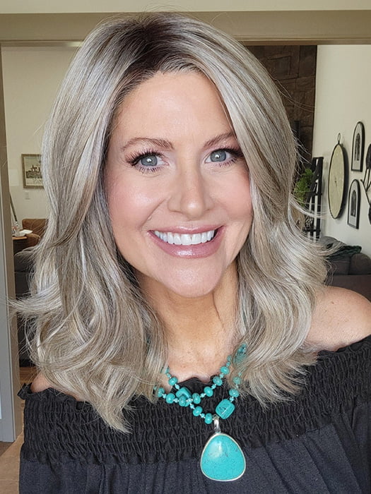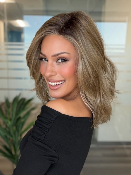 Raise the Bar by Gabor is a long bob (also known as lob) wig with a layered haircut and shoulder-grazing length. Part of the Designer Series, the temple-to-temple lace front gives the option to pull the hair back for a fun updo or wear it down for a polished appearance.