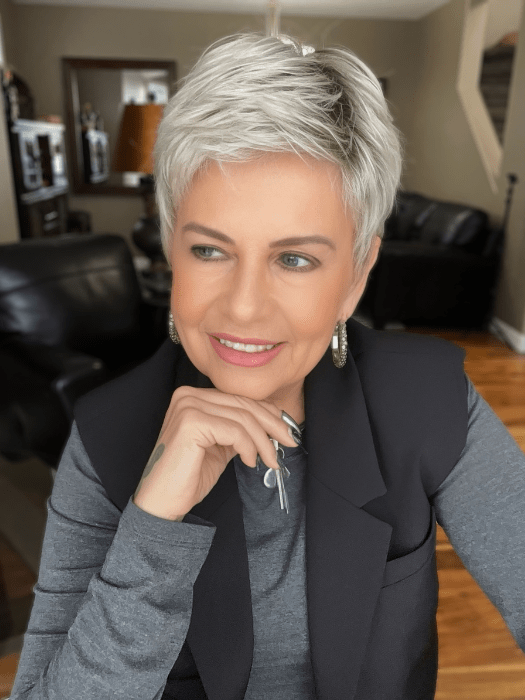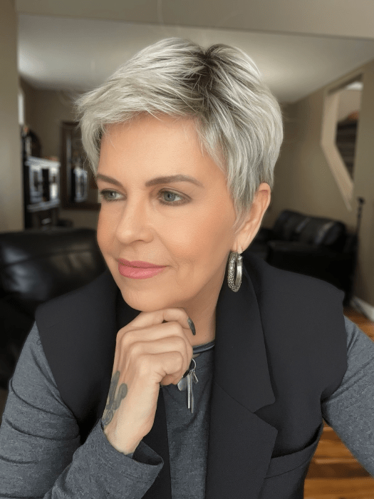 BEST SELLER | Risk by Ellen Wille is an ultra-lightweight pixie cut wig with short bangs, weighing less than two ounces. Designed for petite to average head sizes, it features a lace front and monofilament crown for a natural-looking hairline and realistic scalp appearance.