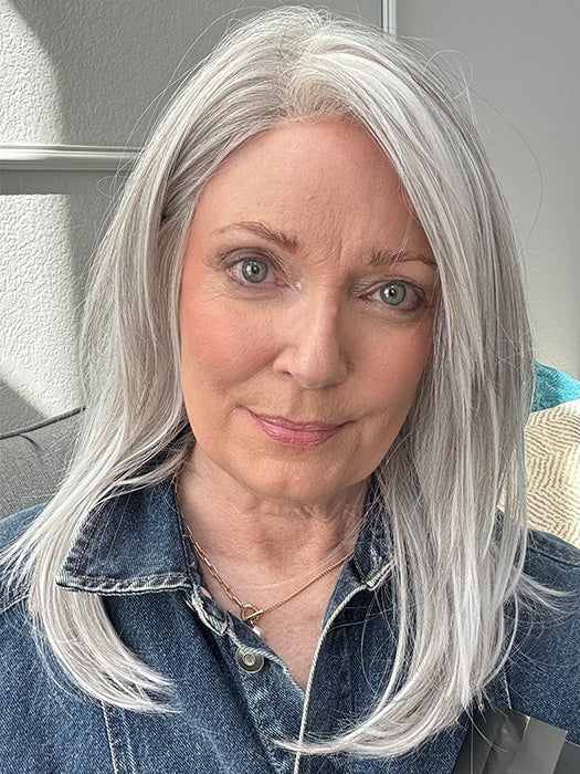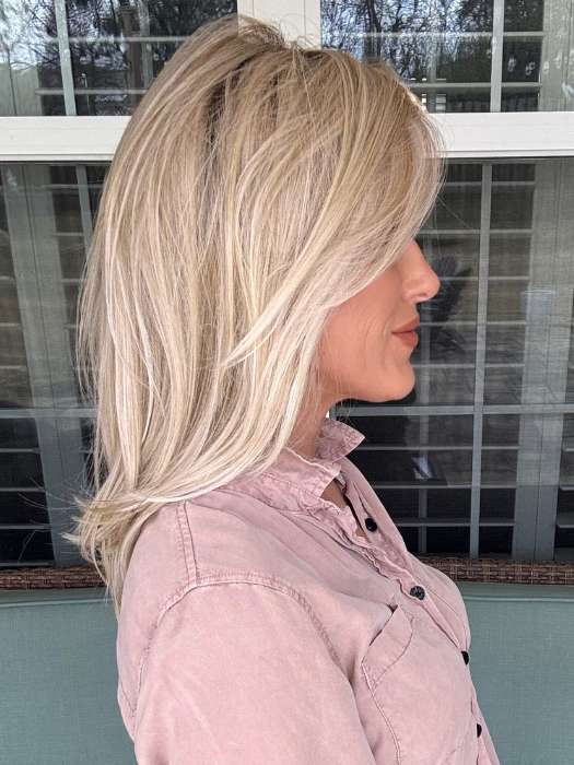 Seville by Belle Tress is one of their standout styles from the iconic City Collection. Crafted with heat friendly synthetic fiber, the hair is cut into soft layers that strategically frame the face. The wispy, side-swept bangs create a trendy look. The extended lace front allows you to create off-the-face styles while the wide monofilament mimics the look of hair growth.Â