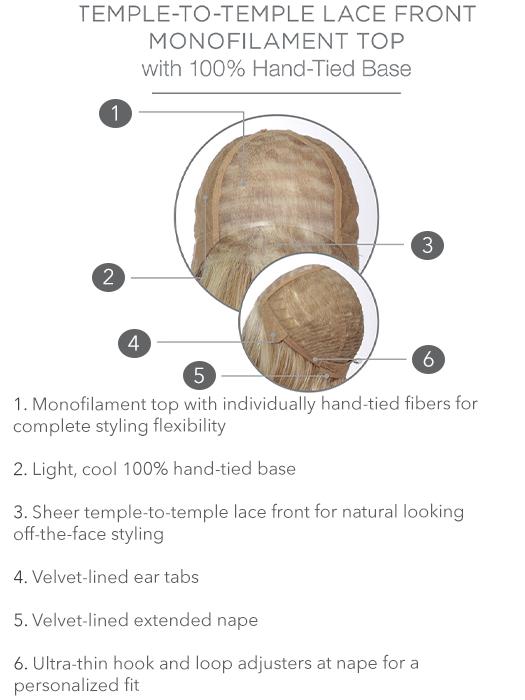 Simmer Elite Petite by Raquel Welch presents this stunning long bob wig with wavy synthetic hair and tapered edges that rest above the shoulders. The hand tied base gives this wig its lightweight feel. The monofilament top gives you more styling versatility.