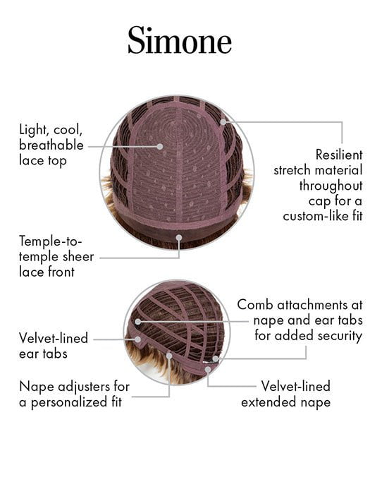 Simone by Kim Kimble is full of styling possibilities! This short wig showcases a layered boy cut with wispy bangs, a tapered nape, and lots of volume at the crown. The Tru2Life heat friendly synthetic fiber gives you the option to wear the hair smooth or flip up the ends for added texture. Perfect for daily wear and special occasions!Â