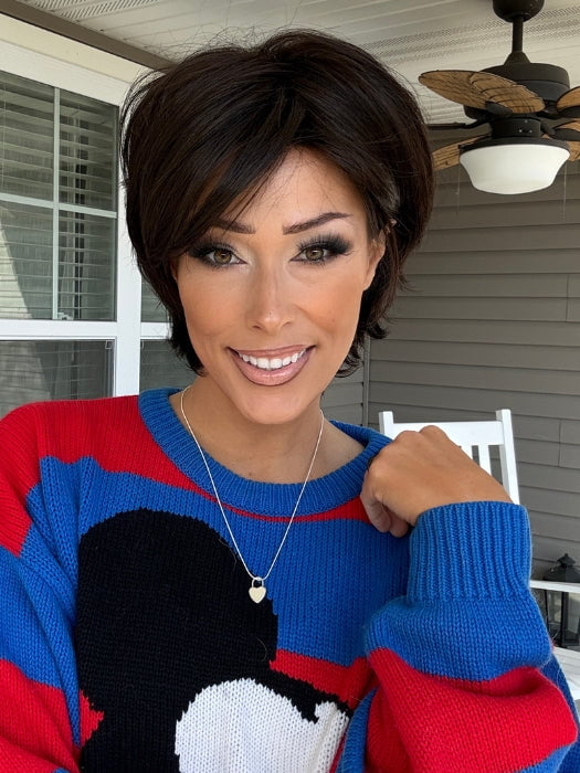 BEST SELLERÂ |Â Sky by Noriko is a short wig, a face flattering bob with feathered layers and wispy ends. From the thinned bang, to the razored pieces around the border, you’ll look effortlessly put together in this top seller. The ready-to-wear synthetic hair looks and feels like natural hair. And the open wefting in the cap creates better air ventilation, which provides more coolness on the scalp. It’s breathable and lightweight for a more comfortable fit. And Sky is customer approved!