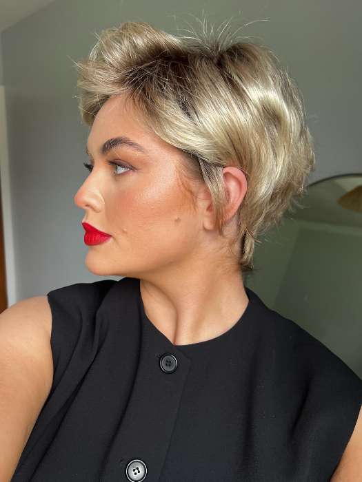 - Sheer Indulgence Monofilament Top – The base is machine-made with flower netting, and the hair on the entire top of the wig is hand knotted one by one throughout the entire top for natural movement and parting flexibility.