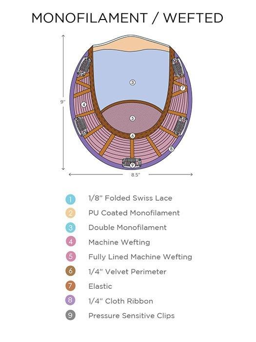 - Monofilament/Wefted Top – Creates the illusions of natural hair growth and allows you to part the hair in any direction.