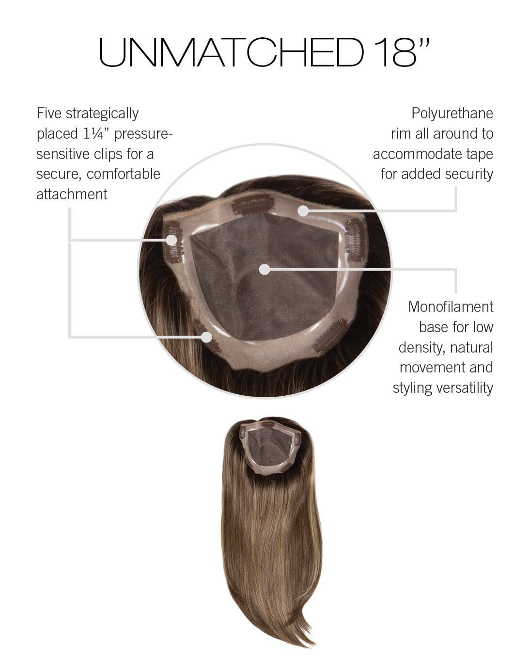 Unmatched 18″ | Synthetic Hair Hair Topper (Hand Tied)